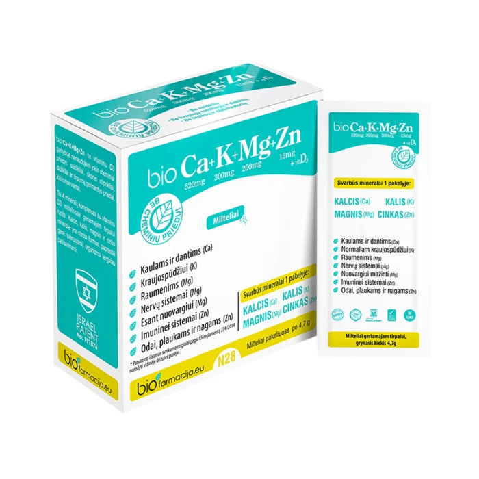BioCa+K+Mg+Zn su vitaminu D3, milteliai, 28 pakeliai