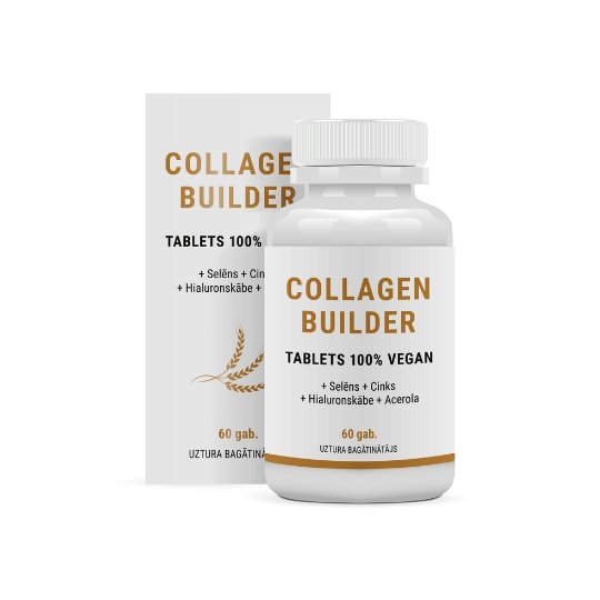 COLLAGEN BUILDER Vegan su cinku, selenu, hialuronu ir acerola, 60 tablečių